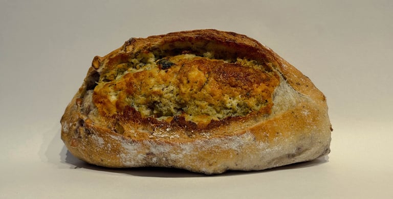 Uma combinação perfeita de nozes e gorgonzola, em uma casca crocante e massa densa e saborosa. Um pão aromático e saboroso.
