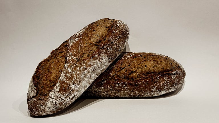 Produzido com levain e longa fermentação, com gergelim branco, gergelim negro, semente de girassol, linhaça dourada, farelo de aveia e quinoa. Tem casquinha crocante e miolo macio com muito sabor e intensidade além de proporcionar muitos benefícios a saúde!