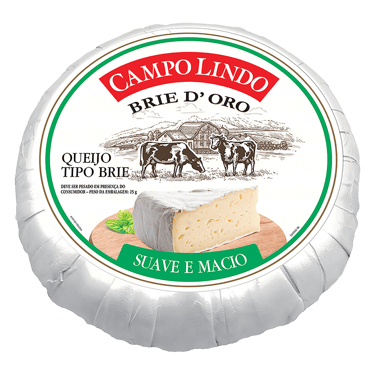 Queijo Tipo Brie Campo Lindo é produzido a partir de leite integral, gerando um queijo de massa crua e fechada. A medida em que o queijo matura, a massa se torna amanteigada e cremosa enquanto a casca fica mais aveludada e branca.
